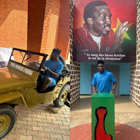 Onana visitó el vehículo que trasladaba a Sankara durante sus actos y se tomó una fotografía en la puerta del Mausoleo al histórico líder burkinés, junto a un mural que lo acompaña.